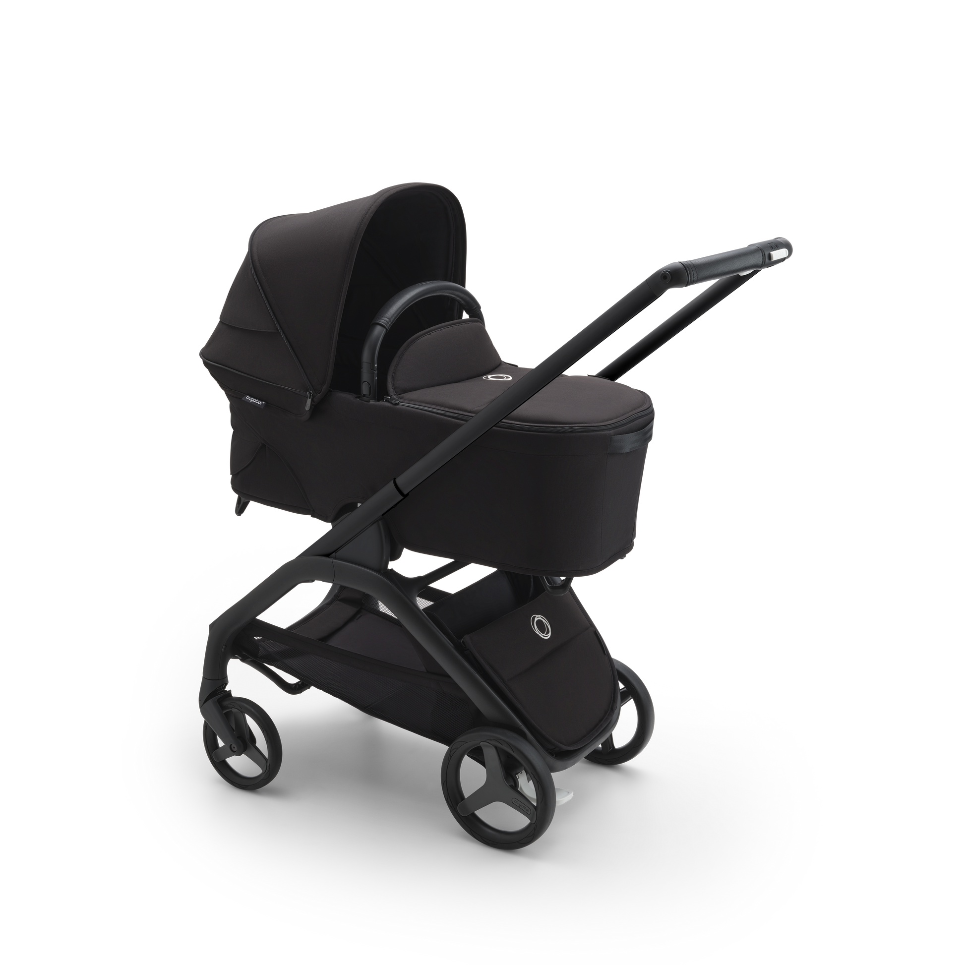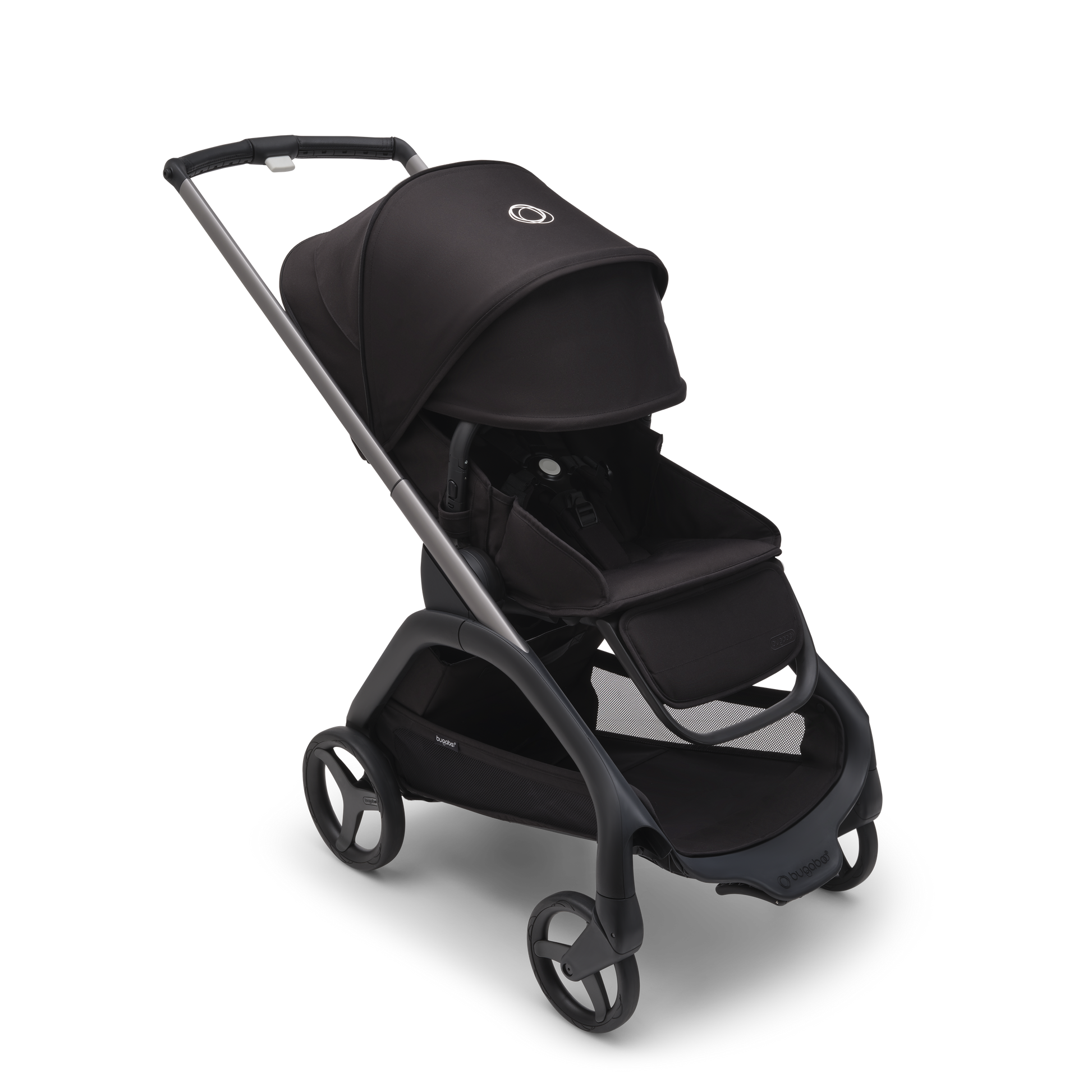 The Bugaboo Dragonfly Complete Bundle in Black/Midnight Black is the future city stroller where comfort meets compact. From the day your little one is born, there are many configurations to best suit you and your baby's needs, including a full-size bassinet with a built-in breezy panel. The extendable UPF50+ canopy is multi-functional rain or shine, including a pop-out visor for added protection and for toddlers, the easy buckle harness is padded for guaranteed comfort. On top of that, your essential everyday functionalities like stroller folding, bassinet removal or handlebar adjustments can be completed with just one hand.