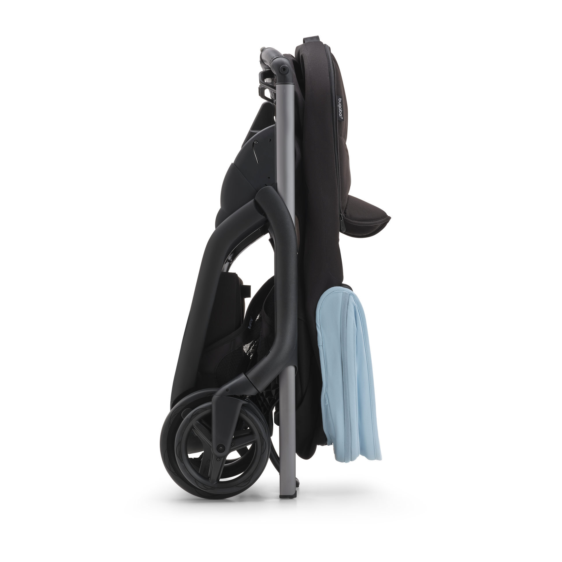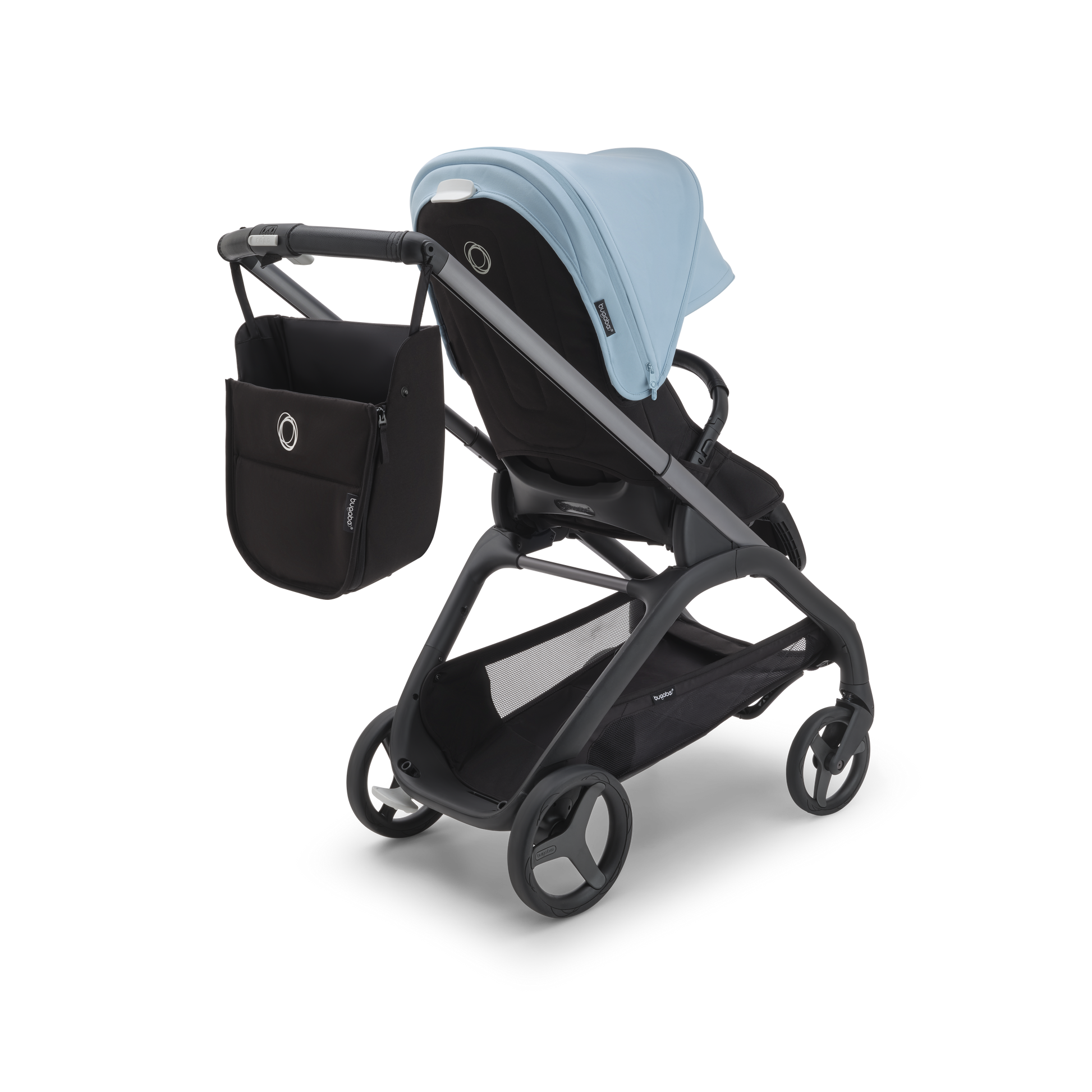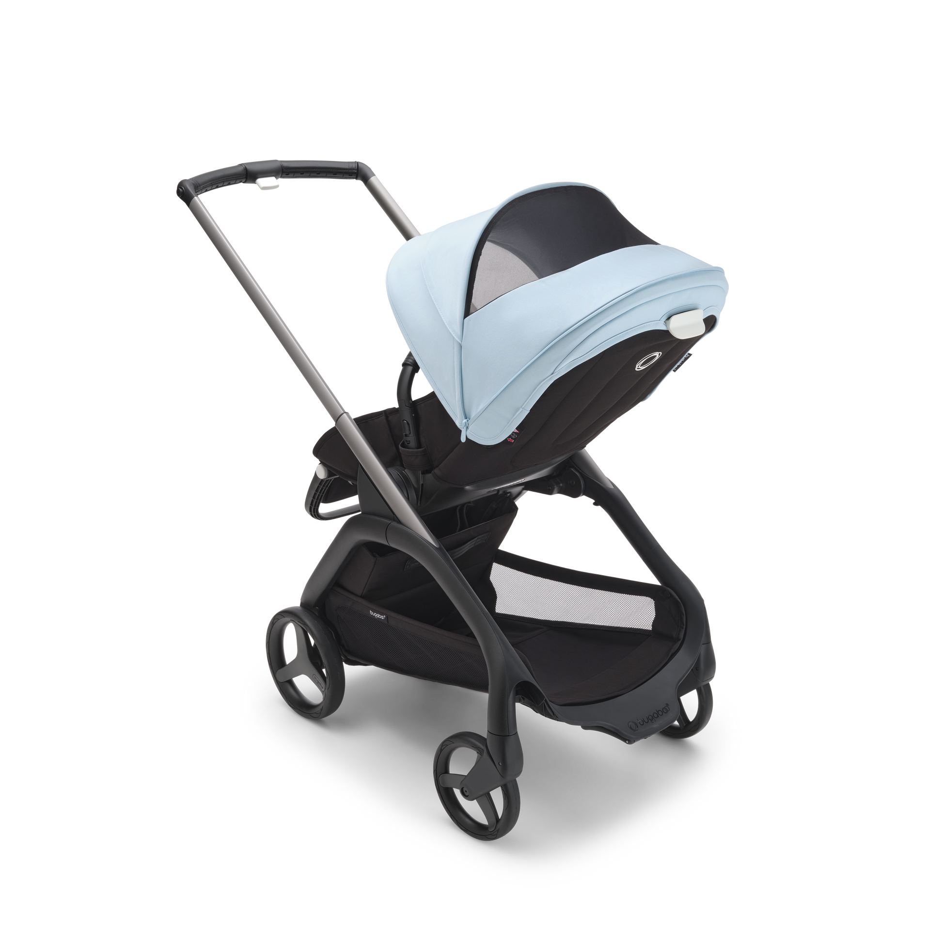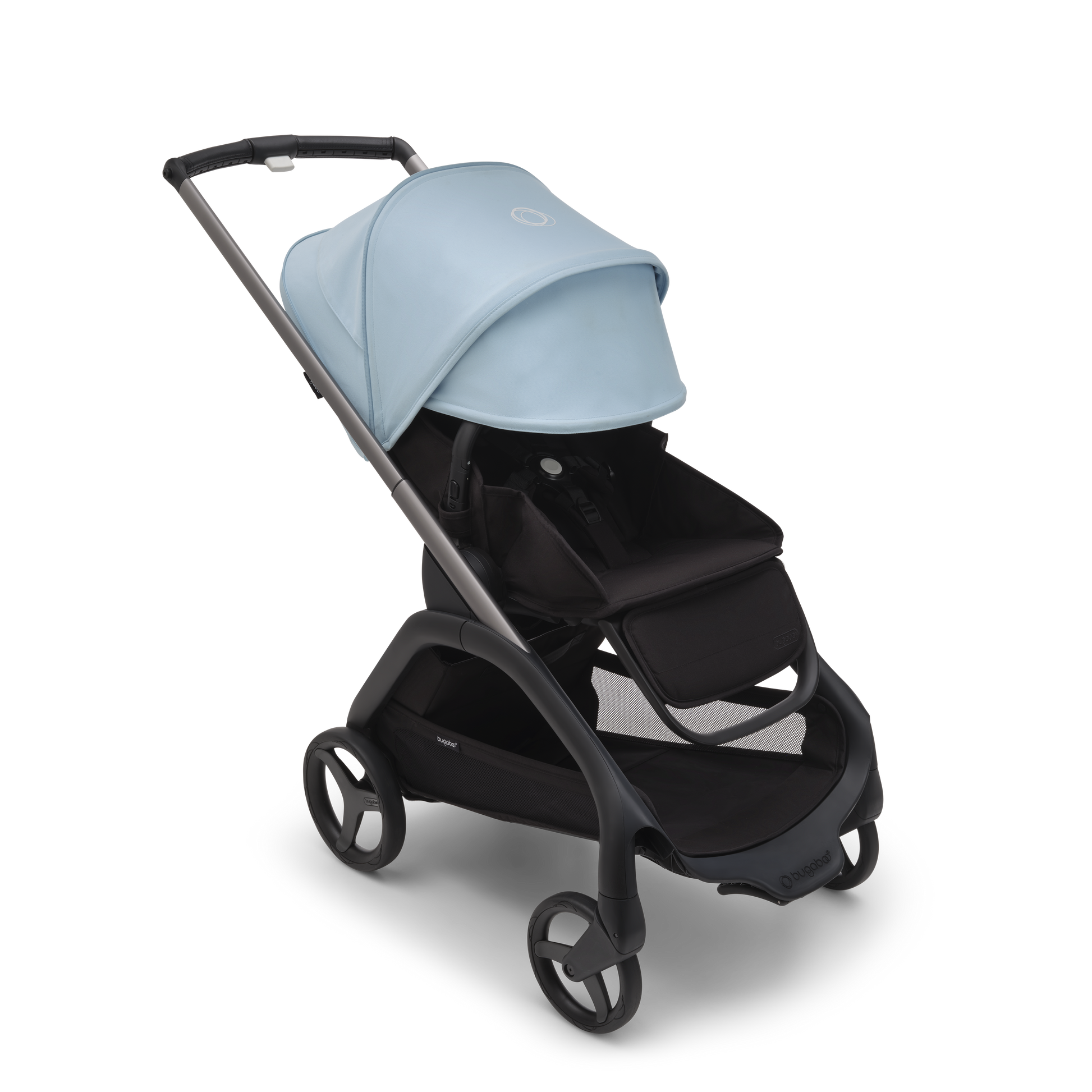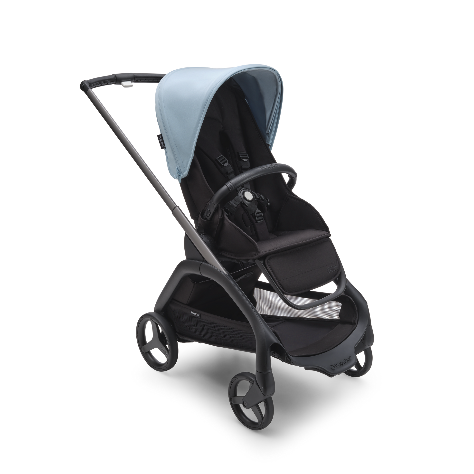 For any urban environment, the Bugaboo Dragonfly Pushchair in Graphite/Midnight Black-Skyline Blueoffers precision steering and full suspension. Plus, the new urban wheel design has enhanced traction for sharper handling and easier navigation.