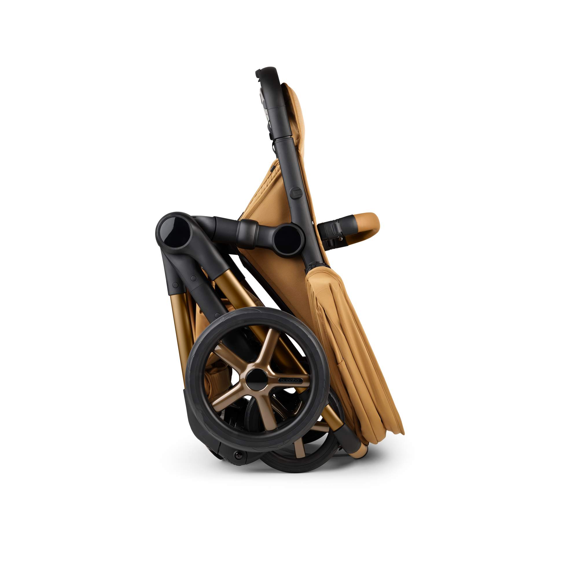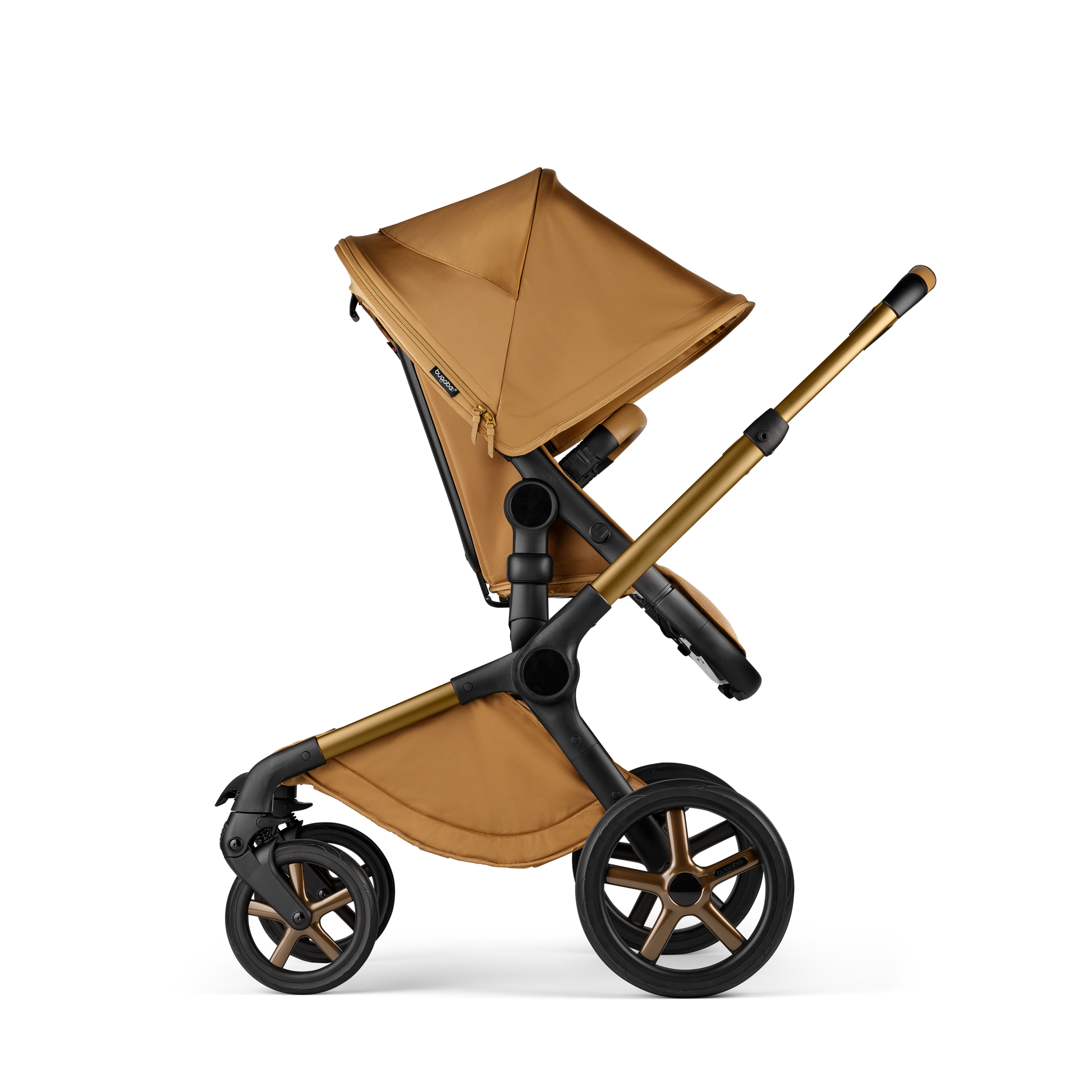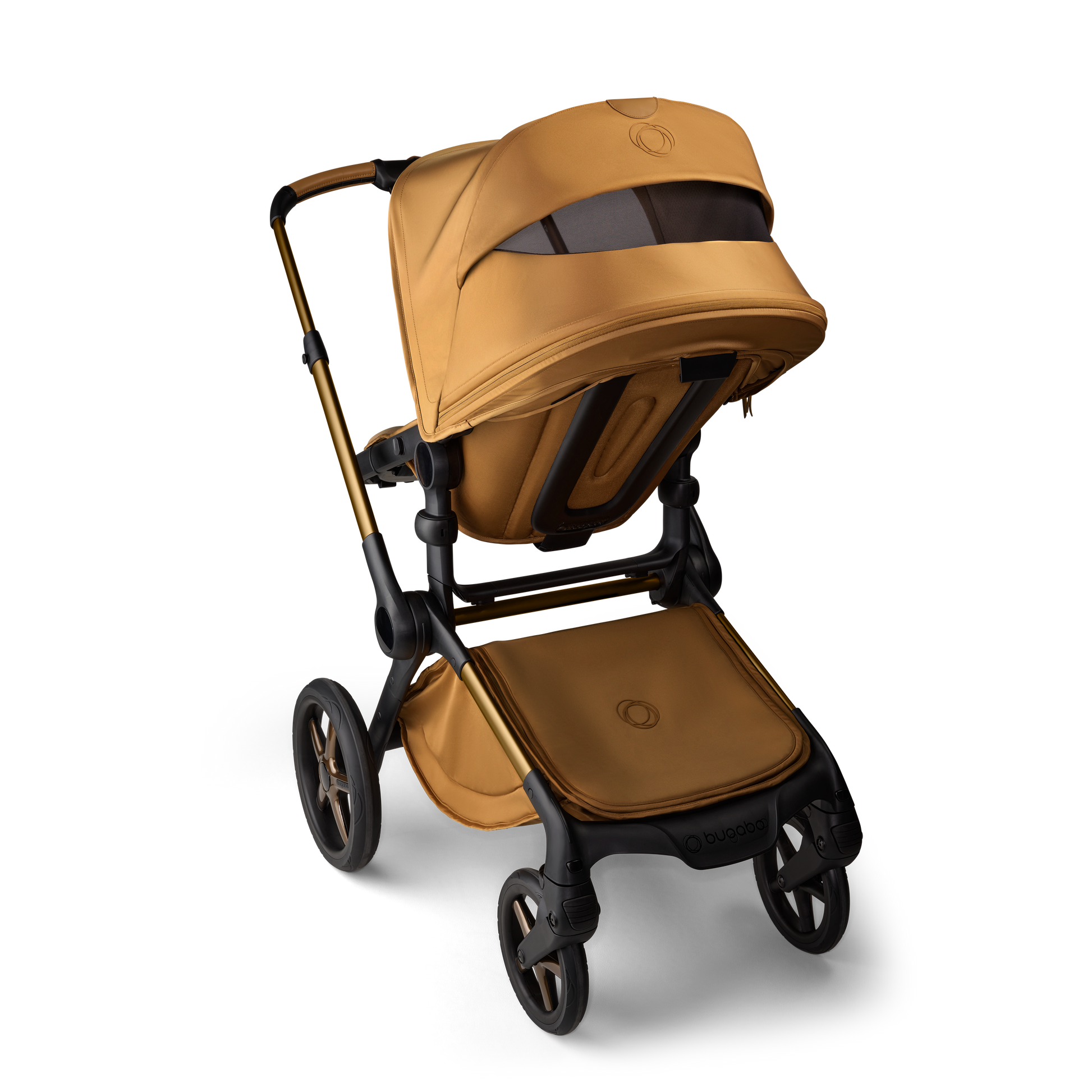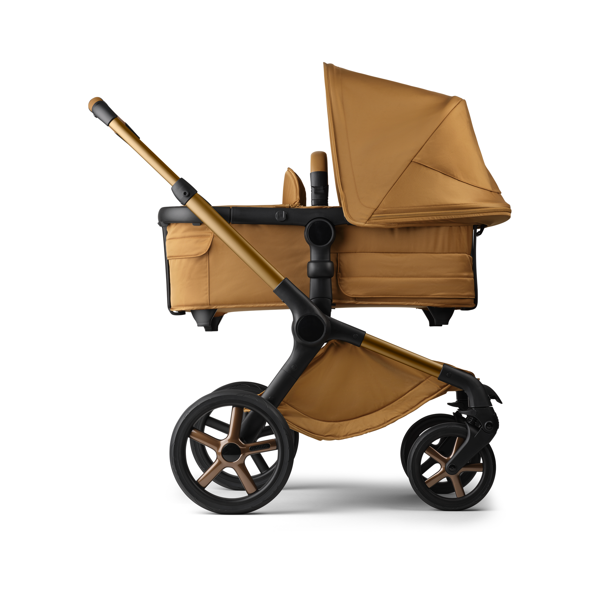 The Bugaboo Noir Limited Edition in Amber Glow – a Bugaboo Fox 5 exclusive. Elevated in three shades of the night, and crafted for exceptional comfort, this iconic all-terrain pushchair design goes beyond our best ride ever. The Noir limited edition features uniquely styled, sturdy yet light chassis and comfort Knit seat. The limited edition pushchair also has an extra large underseat basket with a new built-in cover to offer upgraded protection for your essentials.