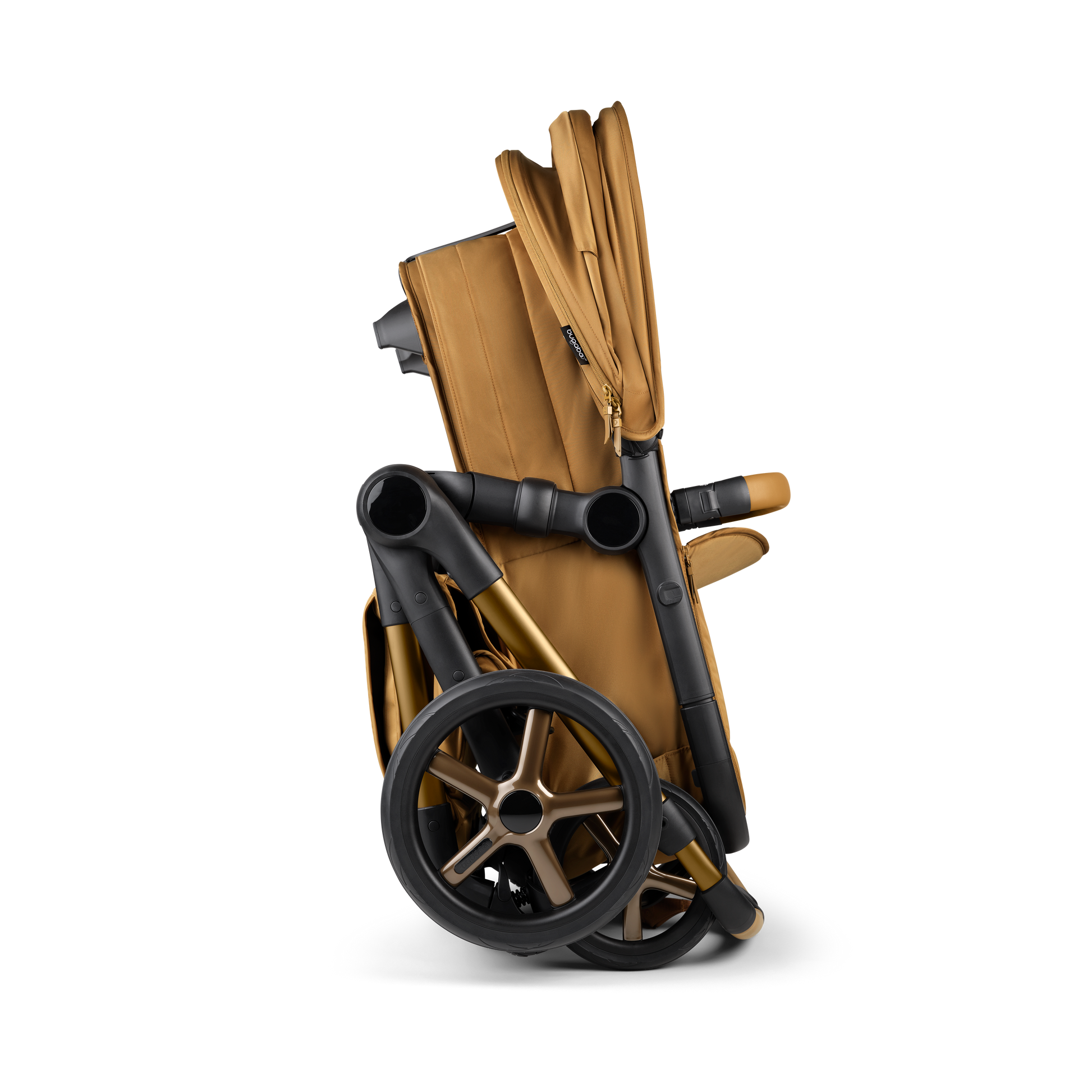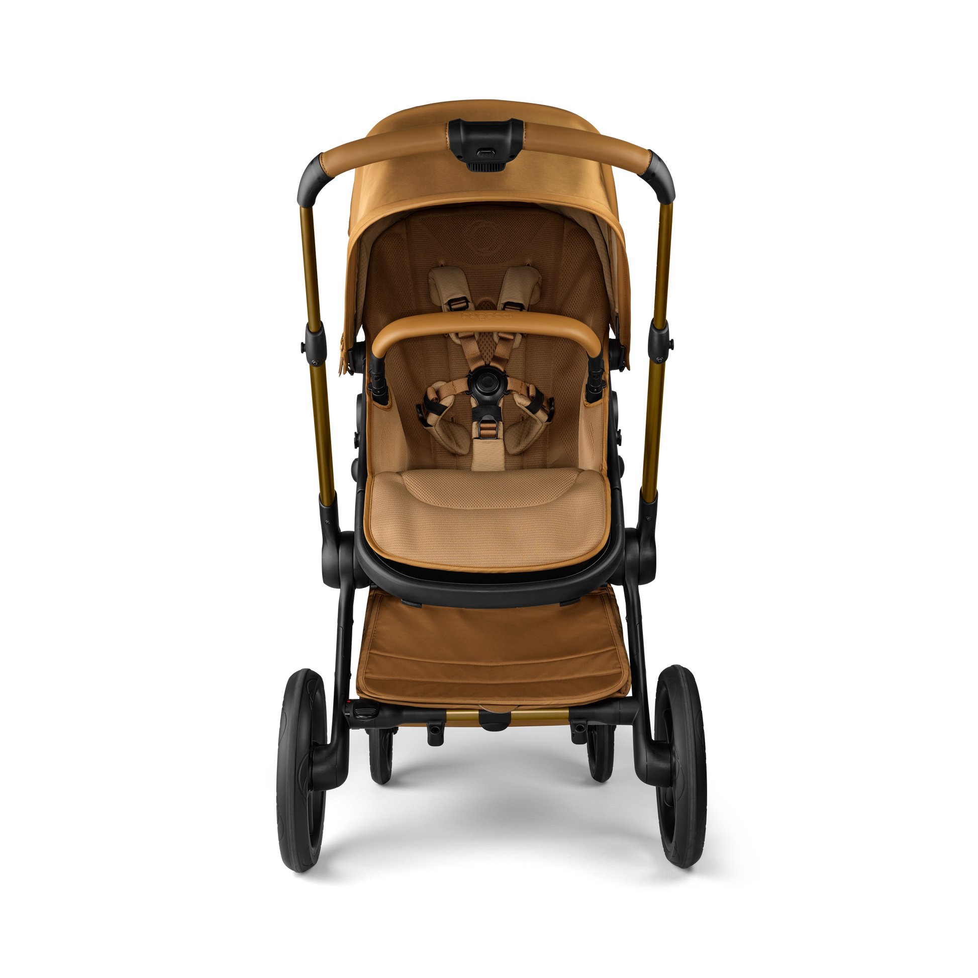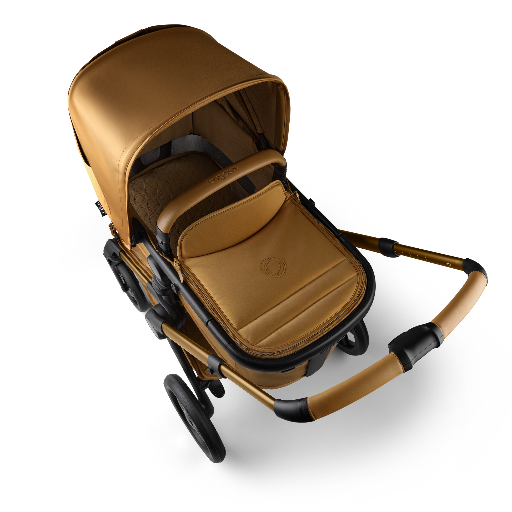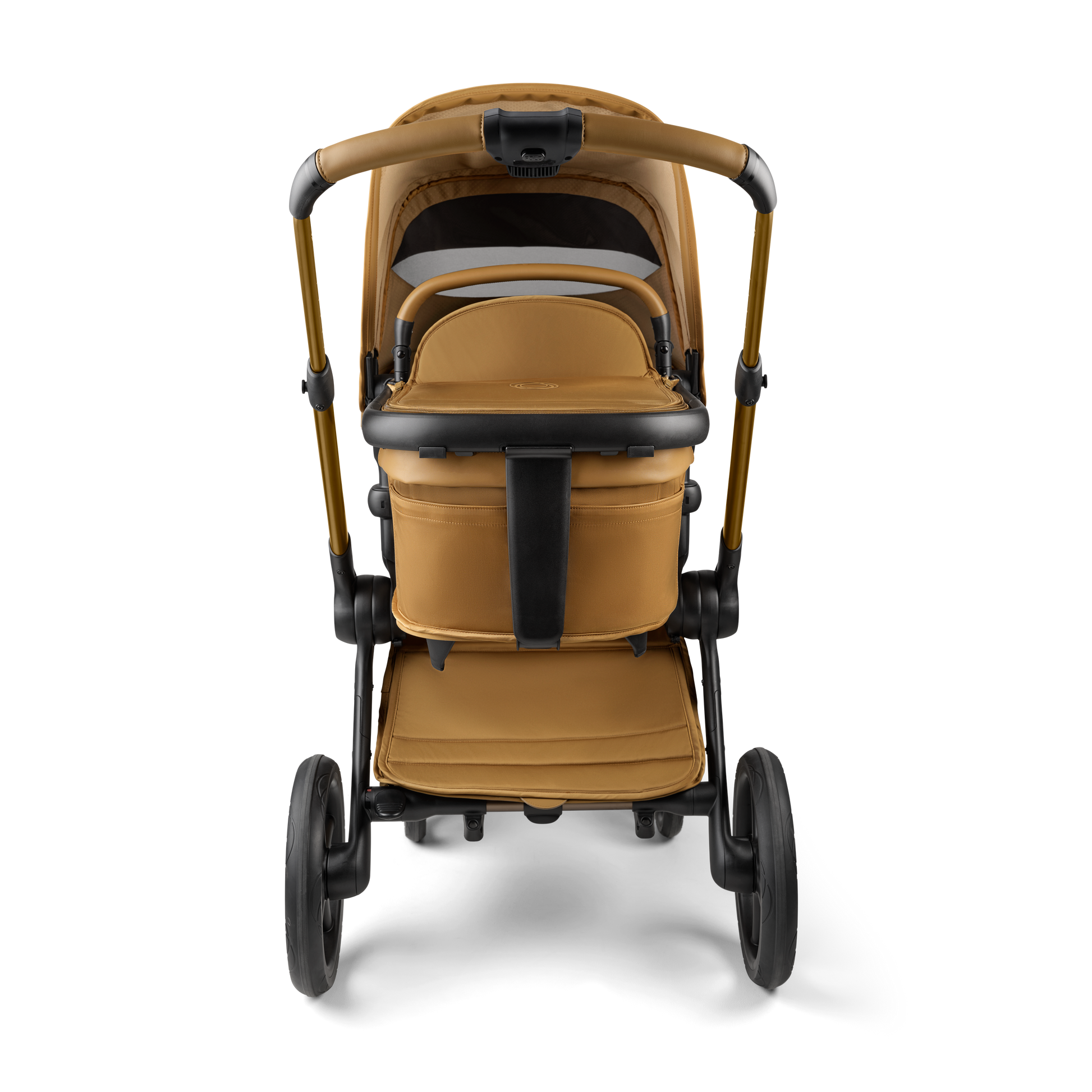 The Bugaboo Noir Limited Edition in Amber Glow – a Bugaboo Fox 5 exclusive. Elevated in three shades of the night, and crafted for exceptional comfort, this iconic all-terrain pushchair design goes beyond our best ride ever. The Noir limited edition features uniquely styled, sturdy yet light chassis and comfort Knit seat. The limited edition pushchair also has an extra large underseat basket with a new built-in cover to offer upgraded protection for your essentials.