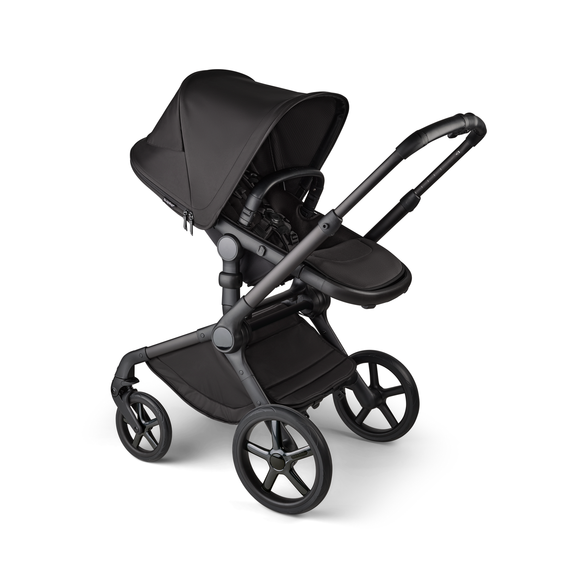 The Bugaboo Noir Limited Edition in Black Moonlight – a Bugaboo Fox 5 exclusive. Elevated in three shades of the night, and crafted for exceptional comfort, this iconic all-terrain pushchair design goes beyond our best ride ever. The Noir limited edition features uniquely styled, sturdy yet light chassis and comfort Knit seat. The limited edition pushchair also has an extra large underseat basket with a new built-in cover to offer upgraded protection for your essentials.