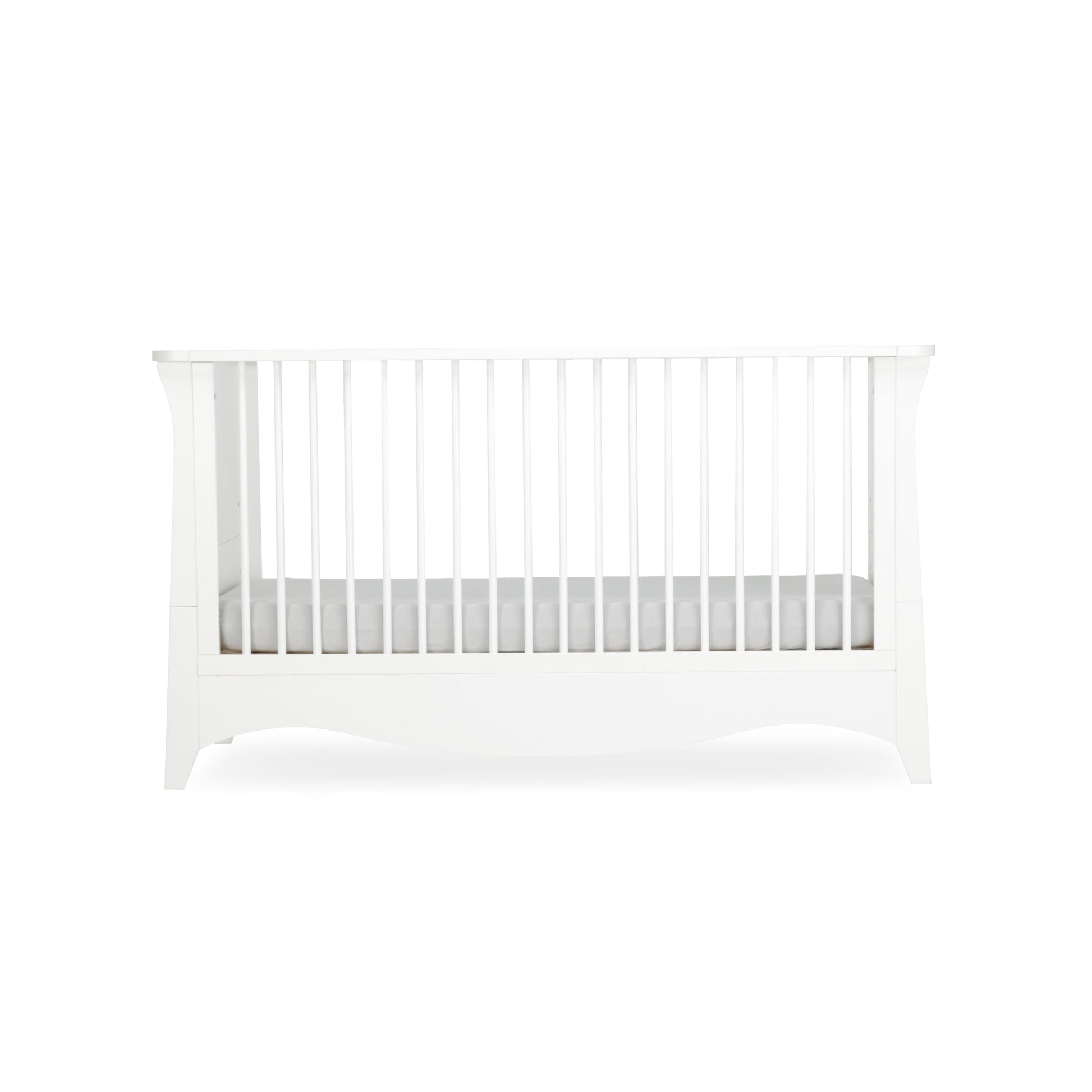 - The Clara cot bed has a stylish white design and complements any nursery room decor