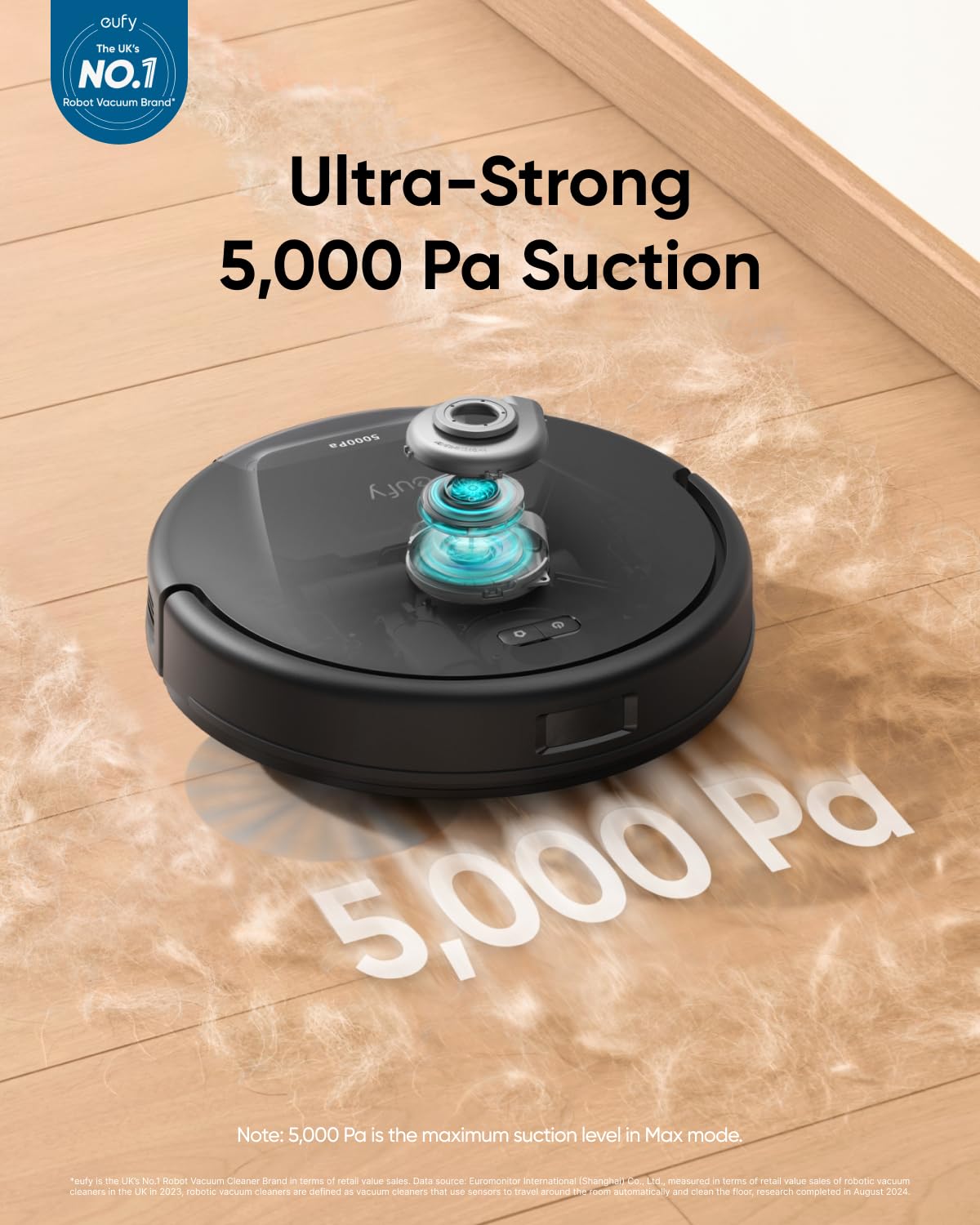 Ultra-Strong 5,000Pa Suction: Removes hair, crumbs, and dust in a single pass for spotless floors.