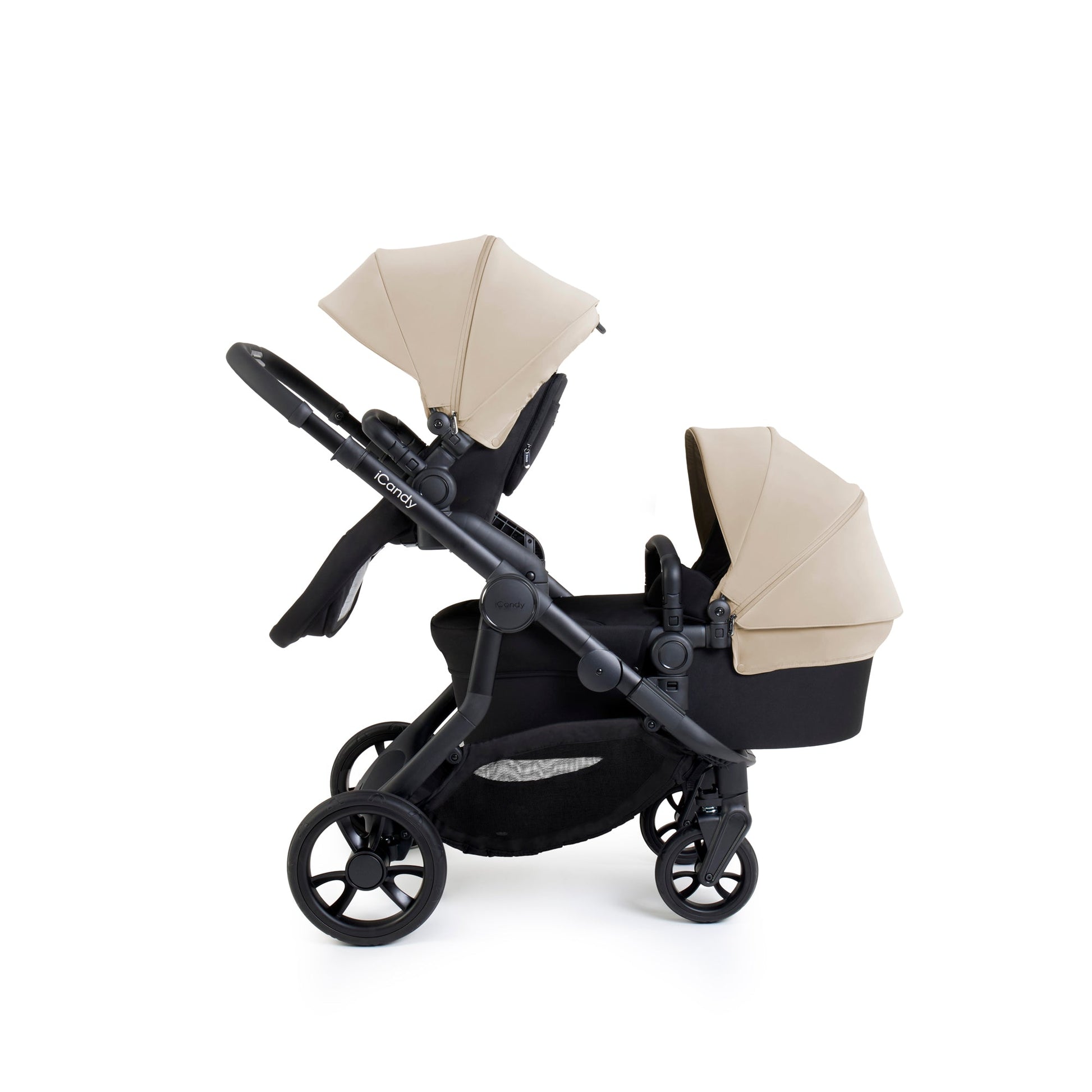 The iCandy Orange 4 Pushchair Bundle in Fossil is the ultimate companion when it comes to parenthood and the beautiful, multi-functional pushchair is ready for adventure, every step of the way. Single-to-double ready, straight out of the box, the new Orange 4 features functionality modifications, softer suspension and greater manoevrability to enhance day to day life as well as comfort and a smoother ride for both parent and child. These adaptations don’t come at the expense of style, with the iCandy Orange 4 exuding a sophisticated and improved aesthetic. The water repellent breathable canopy, with mesh ventilation, is available in five fashion-forward colours - Pistachio, Fossil, Latte, Rose and Black Edition on a Jet Black chassis. An ingenious integrated Ride-on Board, lightweight and streamlined chassis and super spacious basket, means the iCandy Orange 4 is ready from the get-go, making it the ultimate choice for both first-time parents and growing families.