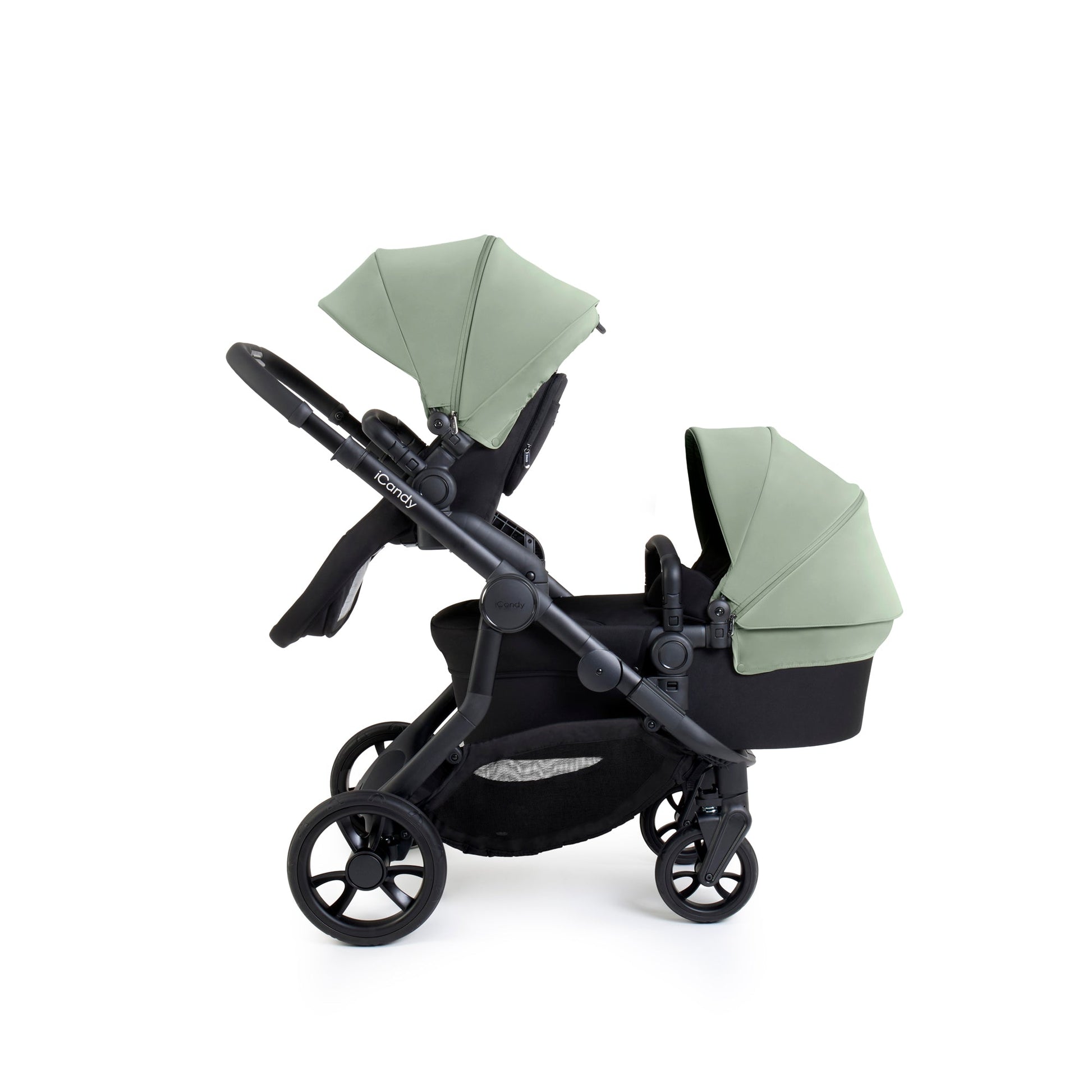 The iCandy Orange 4 Pushchair Bundle in Pistachio is the ultimate companion when it comes to parenthood and the beautiful, multi-functional pushchair is ready for adventure, every step of the way. Single-to-double ready, straight out of the box, the new Orange 4 features functionality modifications, softer suspension and greater manoevrability to enhance day to day life as well as comfort and a smoother ride for both parent and child. These adaptations don’t come at the expense of style, with the iCandy Orange 4 exuding a sophisticated and improved aesthetic. The water repellent breathable canopy, with mesh ventilation, is available in five fashion-forward colours - Pistachio, Fossil, Latte, Rose and Black Edition on a Jet Black chassis. An ingenious integrated Ride-on Board, lightweight and streamlined chassis and super spacious basket, means the iCandy Orange 4 is ready from the get-go, making it the ultimate choice for both first-time parents and growing families.