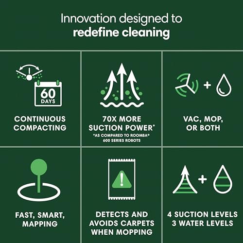 Self-Compacting Bin – Holds up to 60 days of debris thanks to an innovative onboard compacting system.