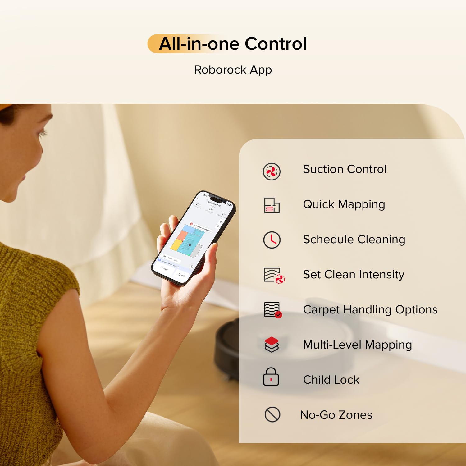 App Control – Schedule cleanings, adjust suction, and set no-go zones directly from your smartphone.